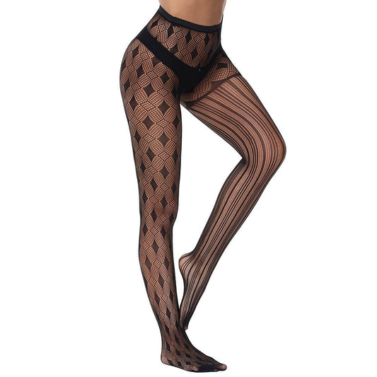 Black Diamond Print Fishnet Tights With Chic Cutouts