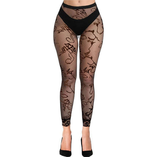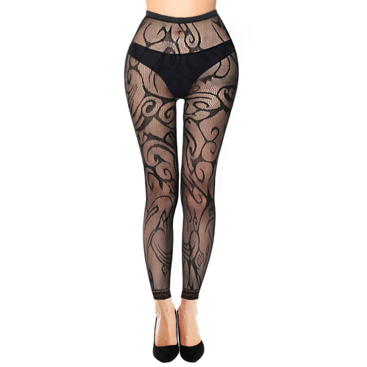 Floral Swirl Lace Footless Tights