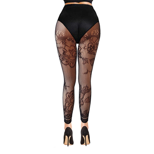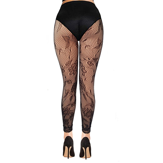 Black Floral Mesh Footless Tights