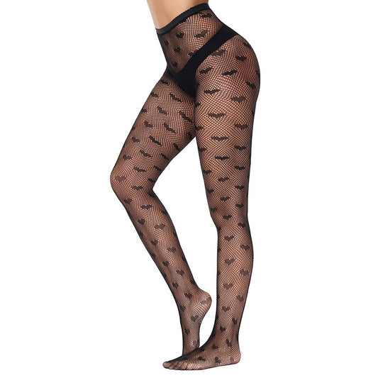 Bat Patterned Halloween Black Tights