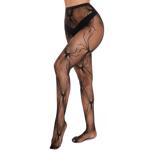 Spider Patterned Halloween Fishnet Tights