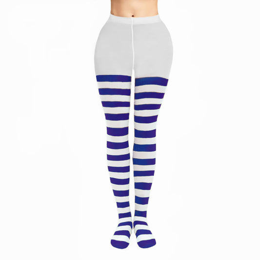 Blue & White Striped Fancy Dress Tights