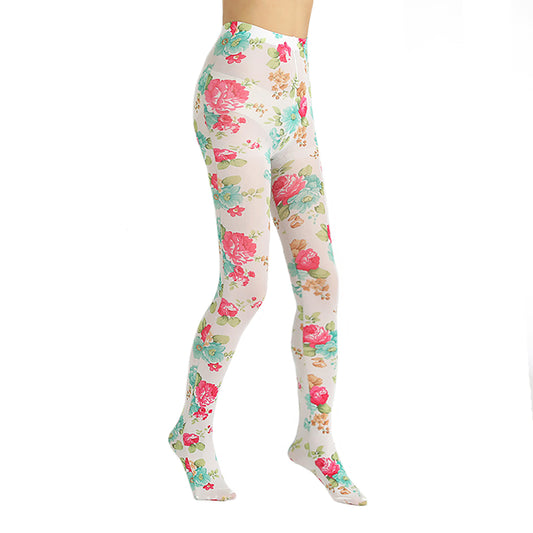 White, Pink & Blue Floral Patterned Sheer Tights