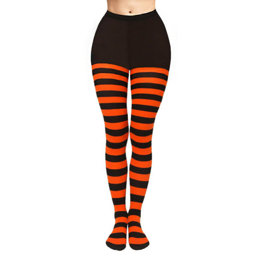 Black & Orange Coloured Striped Fancy Dress Tights
