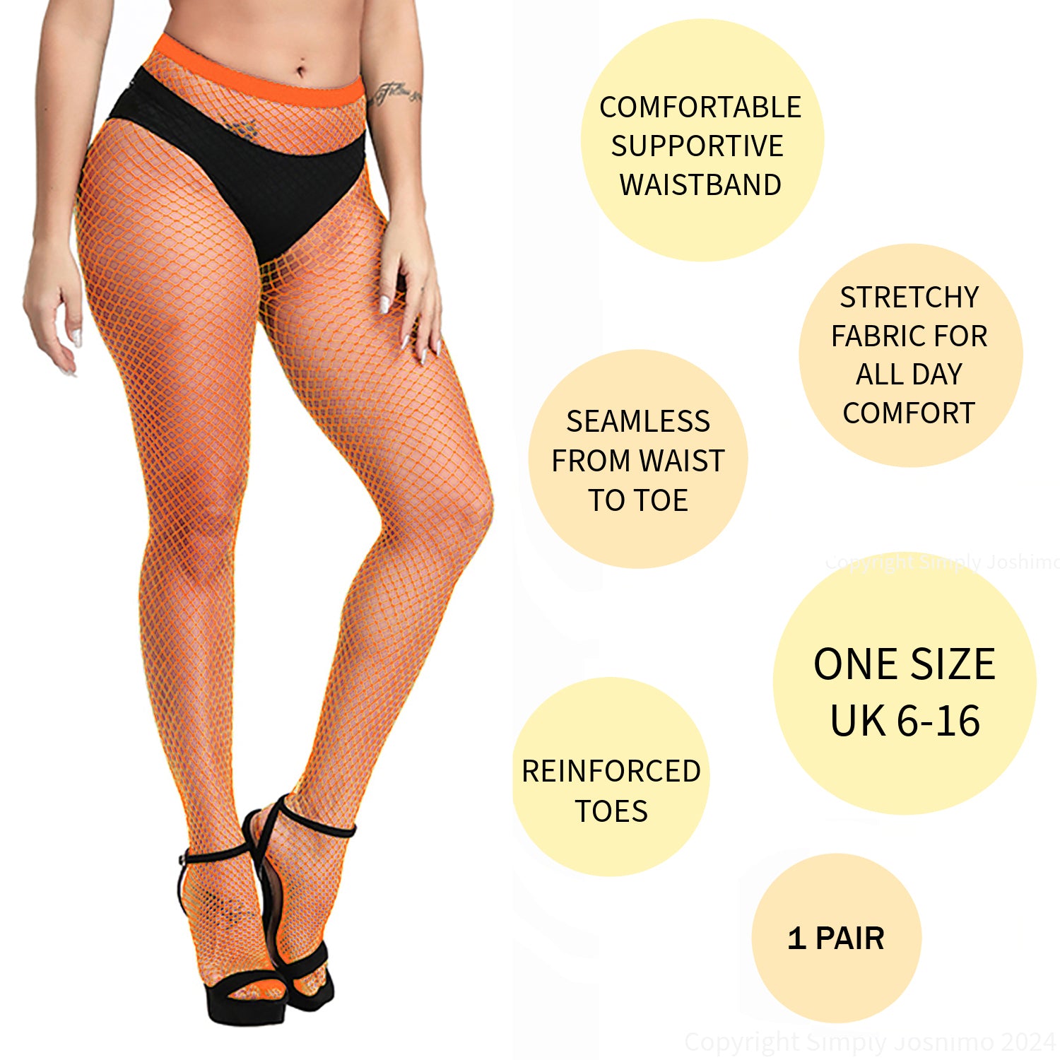 Neon Orange Coloured Fishnet Tights - Micro, Regular, Large or Whale Net - 1 Pair